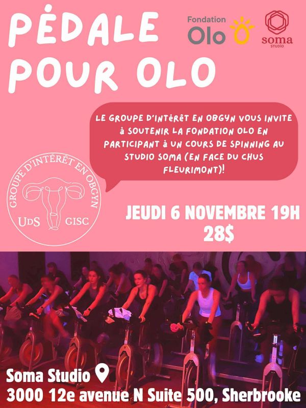 Une autre classe de spinning au profit de la Fondation Olo aura lieu au mois de novembre 2025 alors revenez visiter cette page pour plus d'infos!